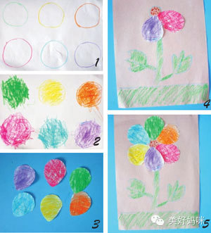 准备好两张白色的纸,在第一张纸上圈出6块区域,让宝宝用颜料或蜡笔进行涂色。接着,妈妈把涂好的各个区域用剪刀剪出花瓣的形状,一共是6片花瓣。另准备一张干净的纸,妈妈先画出花托和花萼,然后让宝宝根据彩虹色花的形状,把各个花瓣用胶棒粘贴到纸上。怎么样,一朵漂亮的花就制作完成了!这个剪贴花的小游戏不但能让孩子认识颜色、简单的数数以及各个季节,还有利于提升孩子在运动技能和视觉感知方面的协调能力。