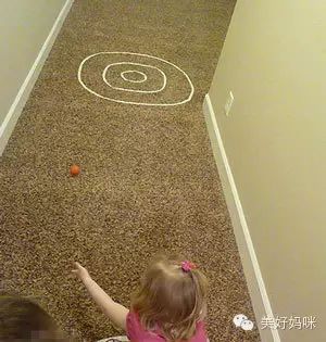 在地板上设置一个区域作为目的地,让孩子在一定距离外用小手将小球推动,看看小球能否停留在目的地,可以将目的地分区域设置得分,全家一起来玩吧!