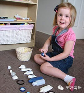 家里不用的小瓶子、小盒子,一定很多吧。把它们的瓶盖和瓶身分开,让孩子们自己去进行配对,很培养孩子的细心观察能力。