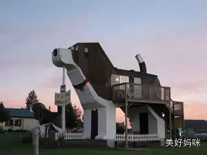 位于爱达荷州卡顿伍德的犬吠公园旅社 (Dog Bark Inn inCottonwood, Idaho)。这家旅社的外观十分别致,像一条大狗一样。室内装潢都和小狗有联系。