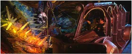 取材于凡尔纳的小说《地心游记》。闪闪发光的水晶洞窟、巨大的蘑菇森林、神奇发光生物……你在感叹神秘地底世界的同时,巨大的危机正在袭来——火山爆发了!整个旅程在地动山摇中瞬间变得惊险刺激!一起尖叫吧!东京迪士尼度假区里的各种“硬”项目都要抓紧抢FP,否则可能就要面临1小时+的长队,不过如果你呆到足够晚,还是可以尽情玩耍滴!