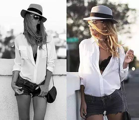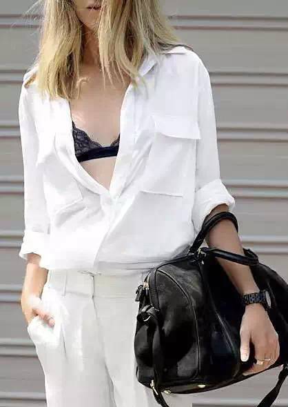 若领口太低,内搭配黑色Bra就能性感的解决走光问题。