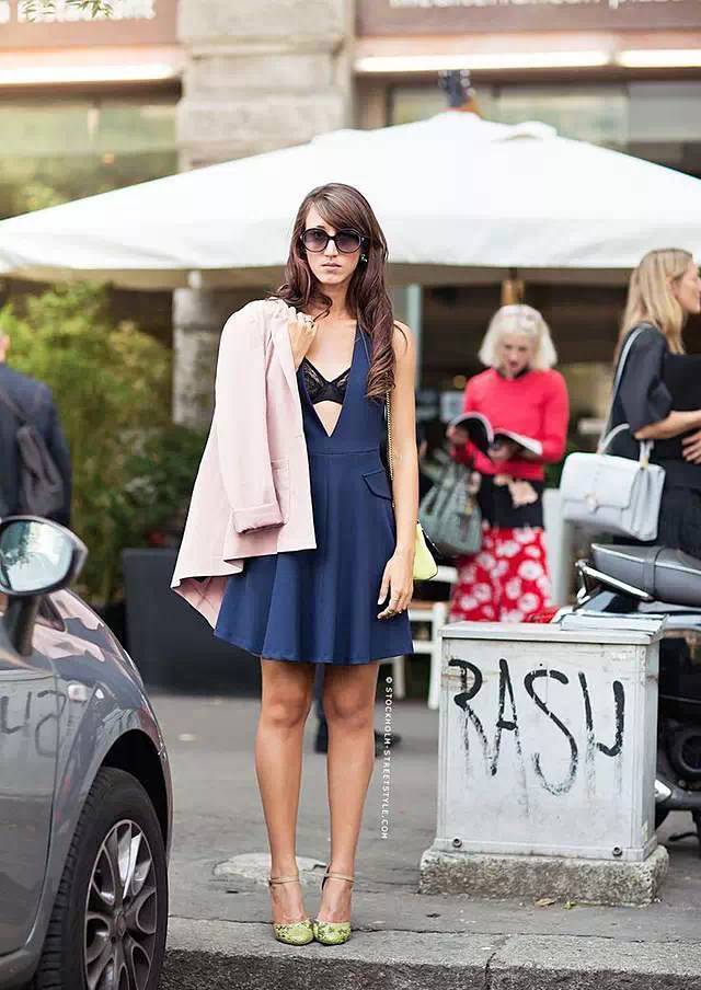 最霸气的穿法,敞开外套:这种直接把内衣当Crop tops的穿法真的好需要勇气,展示性感的同时记得披一件硬朗的外套。