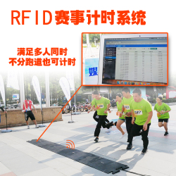 在比赛路线的中如果每隔5公里就设置这样的垫片,也可以很方便地记录运动员的阶段跑所用时间。该装置用于1995年以来各大型的马拉松比赛,RFID还可应用于汽车大奖赛上的精确计时。读写器连接到跑道下面一系列的天线,射频卡安装在汽车前面的天线上方。当赛车越过起跑线时,赛车的ID编号和时间被计时记录,并存储到中心计算机内,这样到比赛结束时,每位参赛者都将获得满意的成绩。