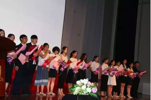 随后毕业典礼进行到第二个篇章:感恩。全体九年级教师以诗歌朗诵的方式为我们的毕业生献上了深深的祝福,希望他们带着青春的风采,带着拼搏的精神,带着美好的回忆,去开始新的征程。九年级毕业生手捧鲜花为老师们一一献上,表达着他们的感激之情。与此同时,部分家长用视频传递对九年级毕业生的祝福和对学校的感激。