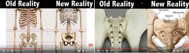 第五个改变是人体下半身盘骨的位置,外形出现了明显的变动。这位脊医在网上找到一些旧电影片段,可以看见人体骨架的旧模型,明显与现今现实的人体骨架外形不同。