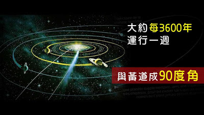 Planet X 是一颗行星,以一个极长的椭圆形轨迹环绕太阳运行,并且它的轨迹是以一个和黄道成 90 度角的角度行走,大约每 3,600 年完成一次。