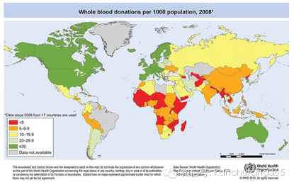 下面这张图显示了各国献血的比率。