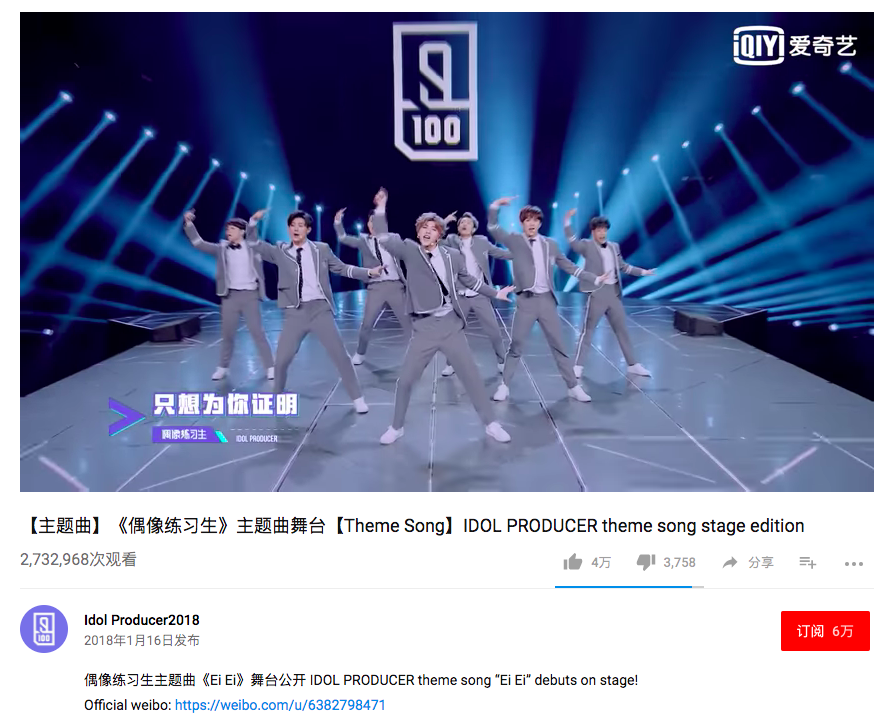 更重要的是,《偶像练习生》不仅要培养红遍全国的优质偶像,也希望以此为契机,将国产偶像推向海外。爱奇艺还在海外SNS渠道上为节目建立了官方账号,不断更新节目的进展,同步上传节目相关视频,目前主题曲舞台《EiEi》点击量已超过270万。此外,还专门、设立了中文教学短片的板块,通过《偶像练习生》向更多的海外朋友传播中国文化。