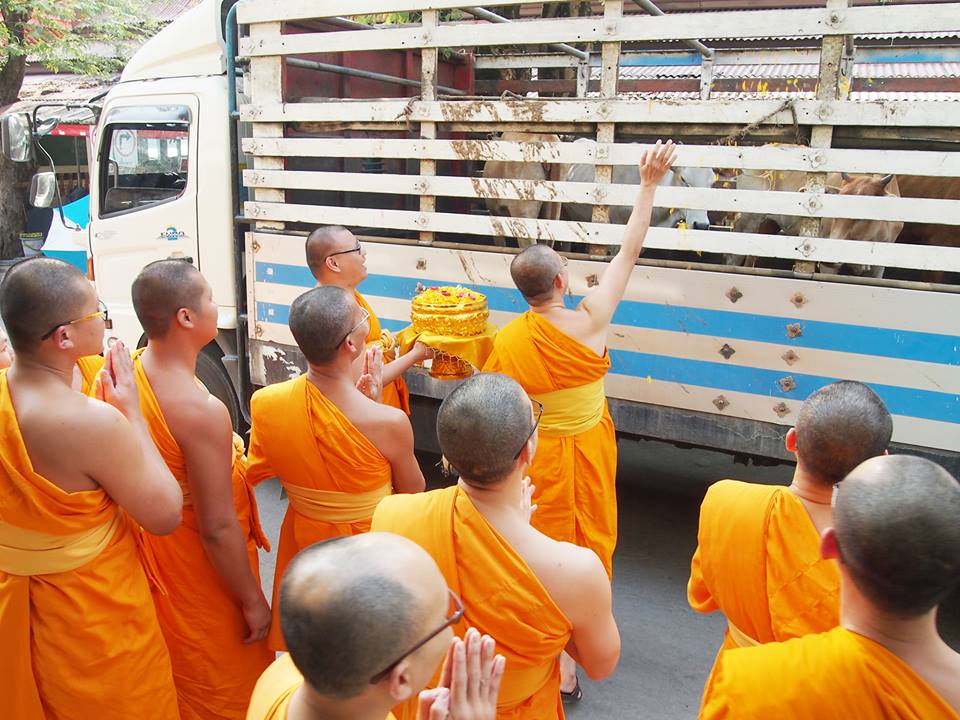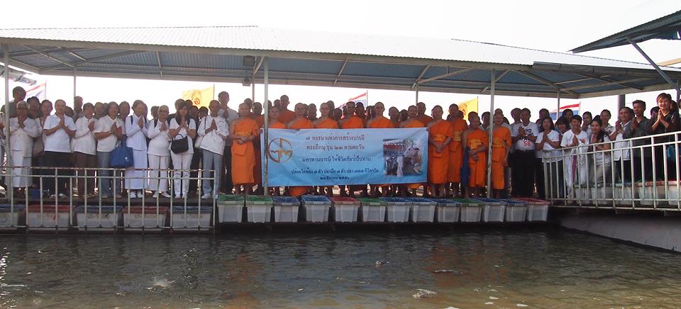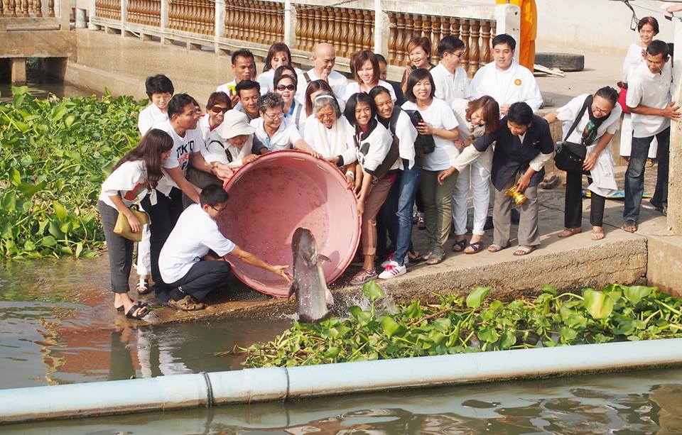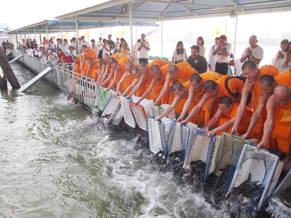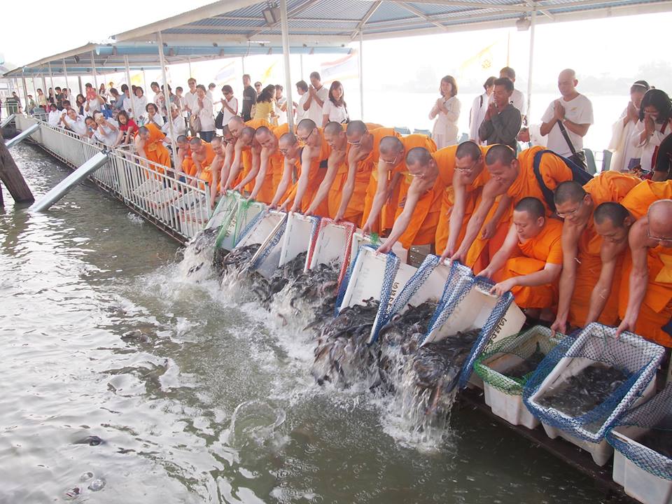 2013年12月28日放生法会 7只孕牛、7只巨型鲶鱼和777公斤的鲶鱼。