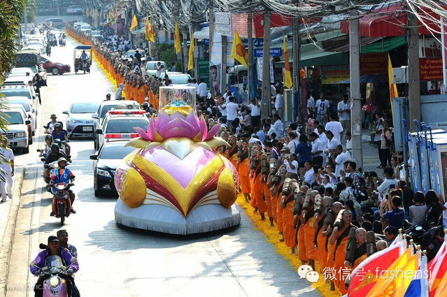 不分男女老幼,带着欢喜心,撒着如金色的万寿菊花瓣,法喜的迎接头陀行比丘和佛舍利。