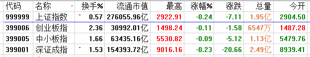 最终收盘沪指跌-7.11跌-0.24%;深成指跌-20.66,跌幅0.23%,;创业板指跌-1.58,跌幅0.11%。北上资金截至今日收盘净流出逾3亿元,
