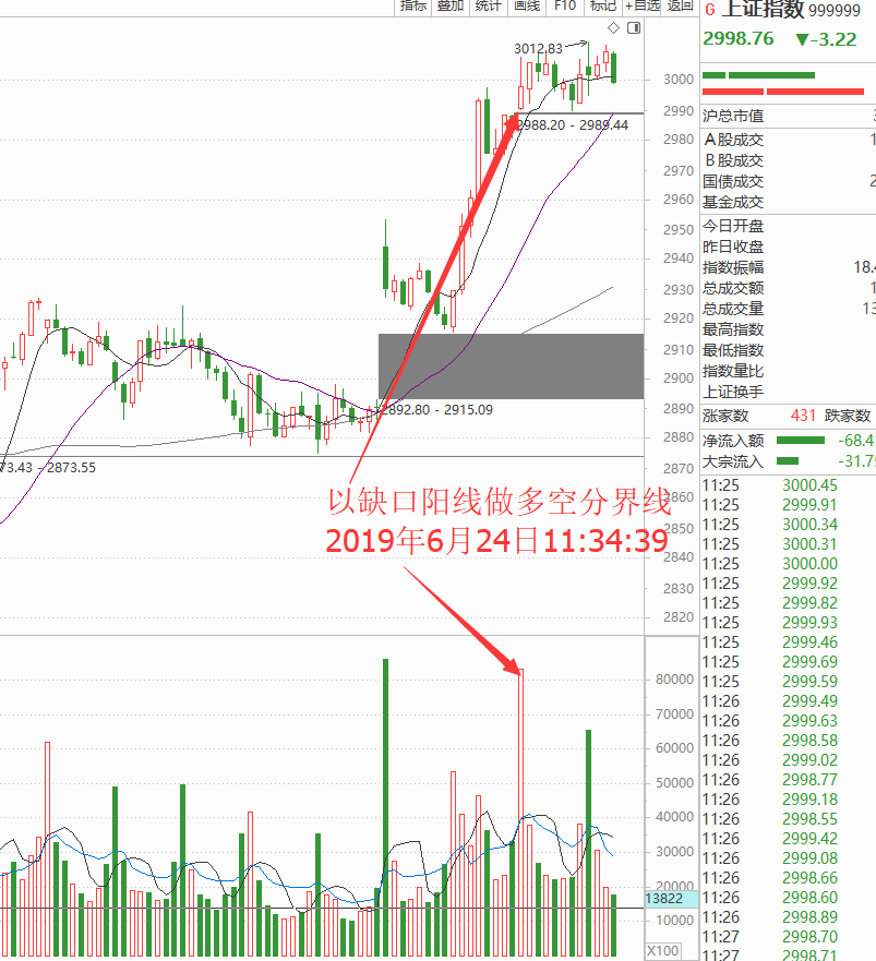 今天盘面没有太大波动,早盘15分钟下探后放量下跌,但是接下来的15分钟收复了失地,60分钟结束的时候收放量阳线,交易原则:相信你眼睛看到的。60分钟收盘确定是上涨过程中的获利兑现抛盘,不是主力资金抛售,我们以30分钟前面的最大量做多空分界线划分(也就是上周放量上攻的阳线)。