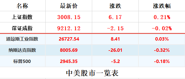 隔夜外盘信息:美国三大股指收盘标普500指数收跌5.10点,跌幅0.17%,报2945.35点;纳斯达克指数收跌25.50点,跌幅0.32%,报8005.70点;道琼斯指数收涨8.40点,涨幅0.03%,报26727.54点。