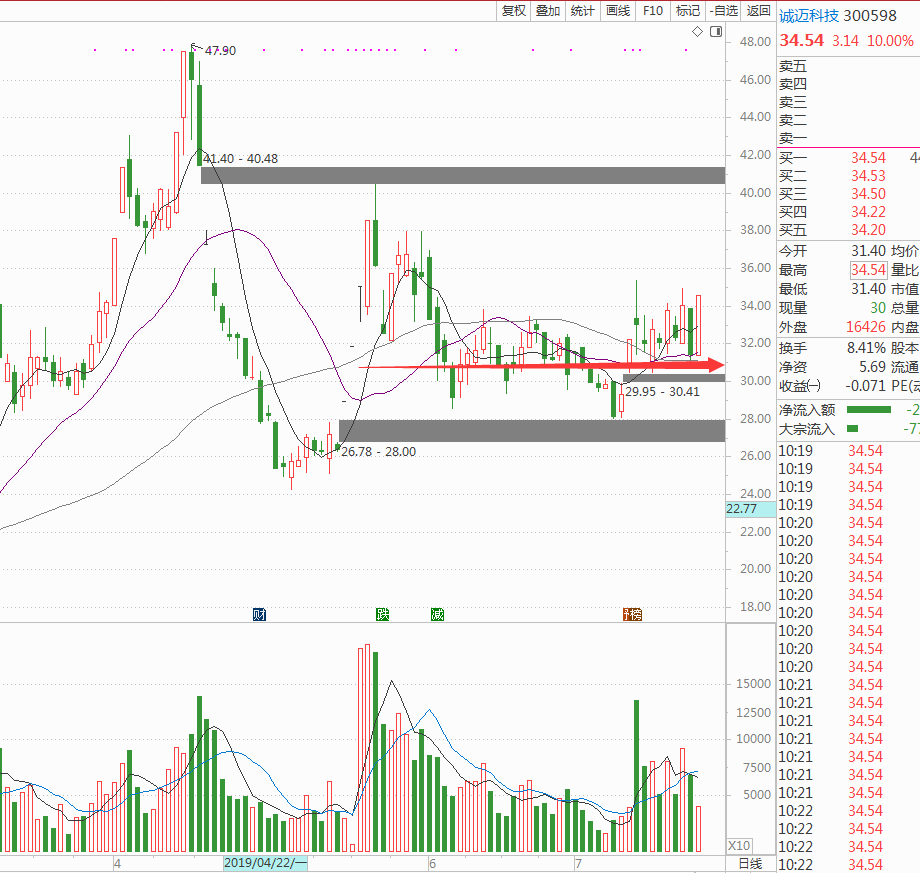 今天大盘稍微反弹个股优秀的已经走强,诚迈科技300598是上周按照无敌量建议大家关注的重点个股和一箭穿心战法结合,产生共振后今天再次强势封板,关注的老铁们应该有收获和对这个个股的技术上理解了。