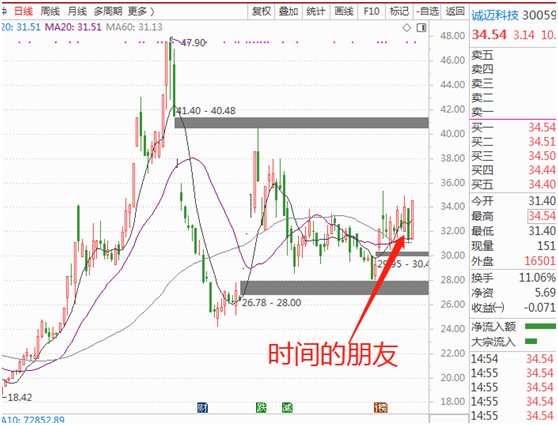 周二大盘稍微反弹个股优秀的已经走强,诚迈科技300598是上周按照技术形态建议大家关注的重点个股,多技术条件产生共振,后周二再次强势封板,如果没有进场的可以继续重点关注。