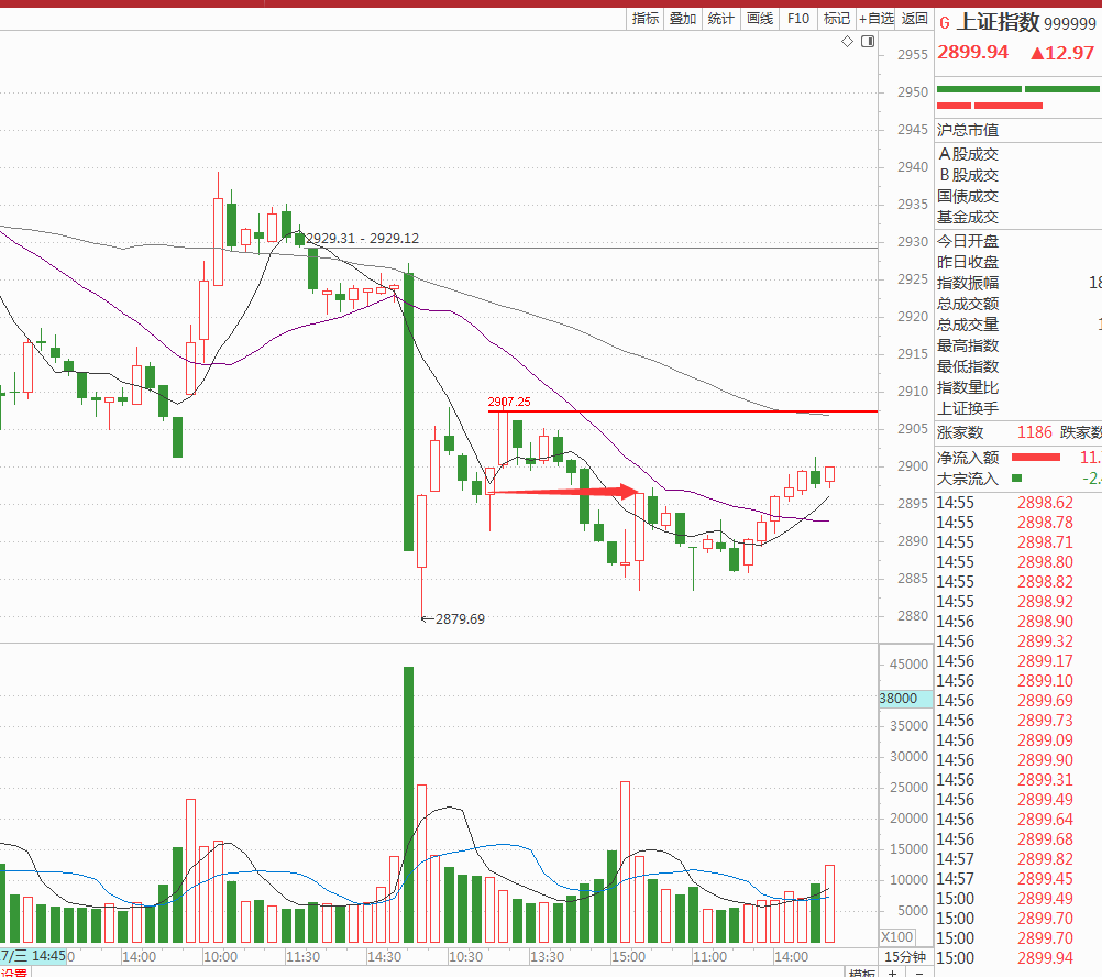 技术上不管是周二给的15、30分钟高点和周一放量的高点2896、2907都是重要的位置,周二早上的文章“干就完了”看了今天的走势你明白点什么没有?其实我就是告诉你没有站上高点,你如果直接干,搞不好就完蛋 了,特别是5天不限涨跌幅的风险已经显现。