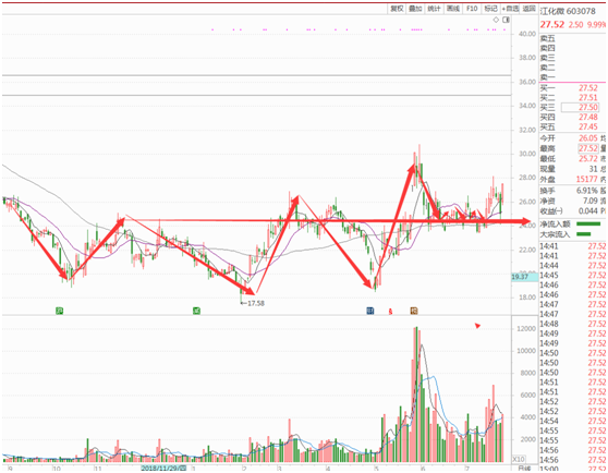 还有一只芯片概念的涵盖化工原料的个股已经整装待发在路上,603078江化微,也是具有中芯国际概念同时也是高世代LCD面板的公司,技术形态W底形成,课重点关注。