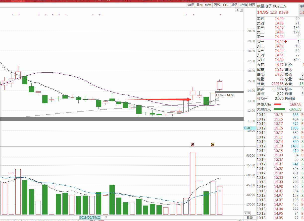 上周提示老铁们关注的002119康强电子昨天封板,今天再次强势上攻,目前冲击到9个点以上,有持有的老铁们现在价格15.00,可要减仓或者了结了。