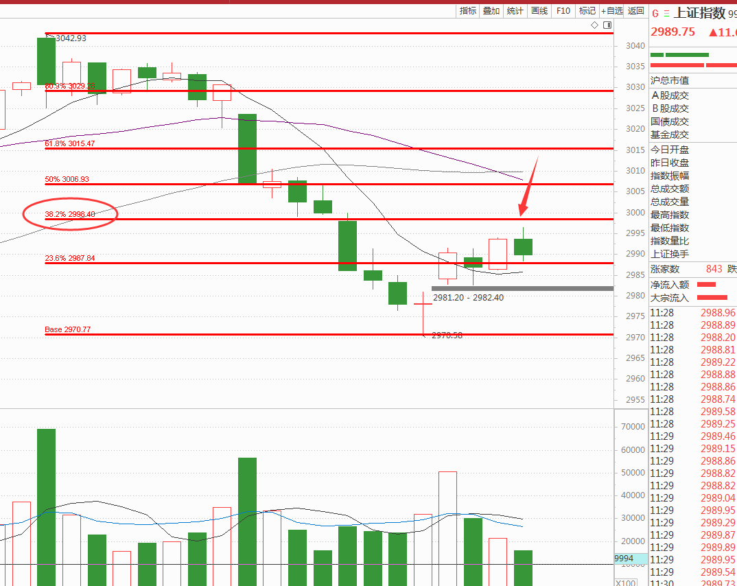 短线市场将转为高位震荡,围绕3000点上下50点区间剧烈震荡,今日有望反弹3000点,由于均线随着震荡下拉,临近午盘60分钟均线压制位已经在了3000点下方,所以今天的建议逢高减仓,再度回踩做双底的时候看15分钟进场。