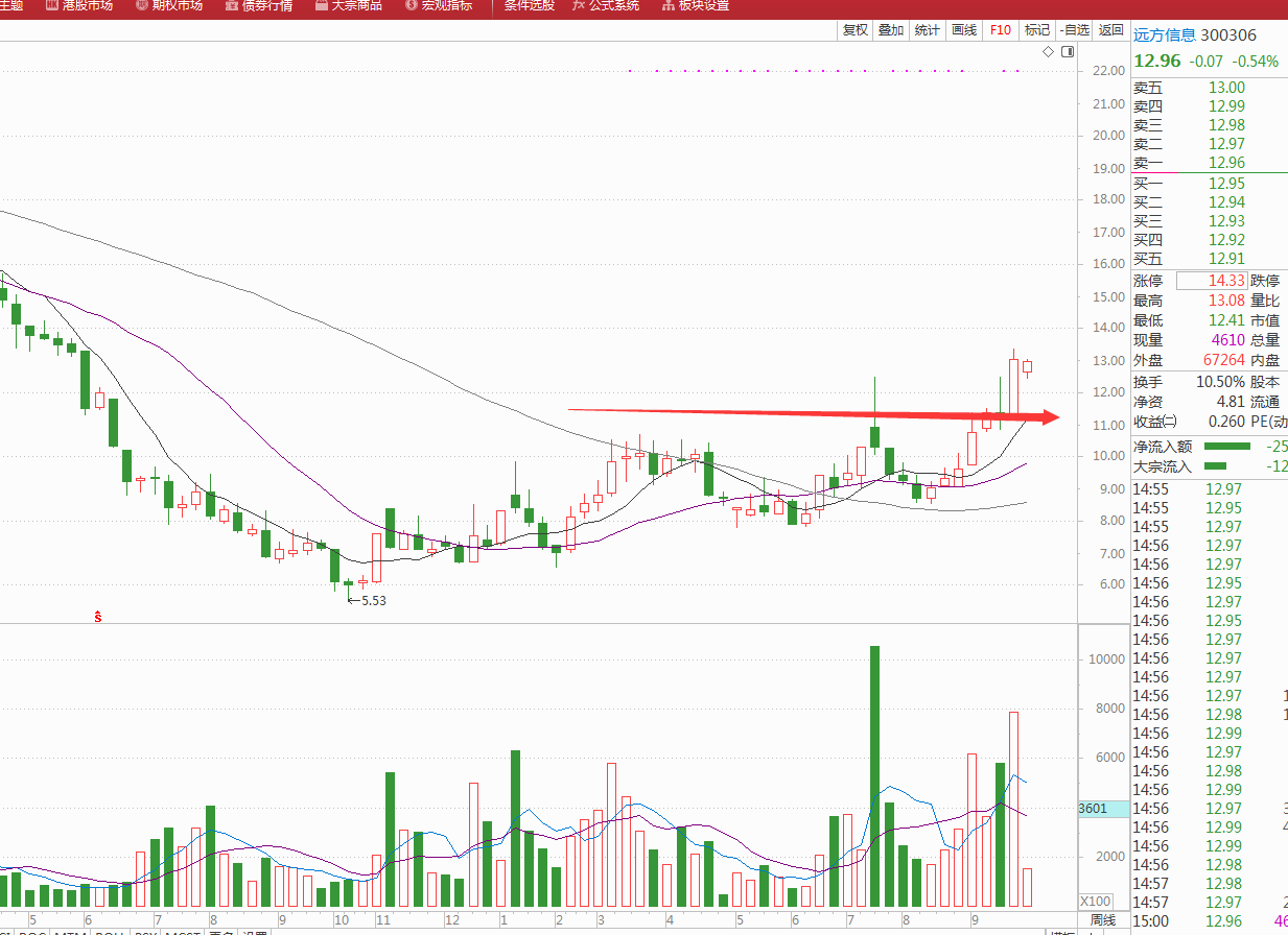 技术图形上300306远方信息突破三个月前高,也是稍强于其他两个公司,利润增长率稍低,但是净利润远远超过其他两家公司,重点关注,如果有大跳空是坚决不能重仓追涨的,切记。