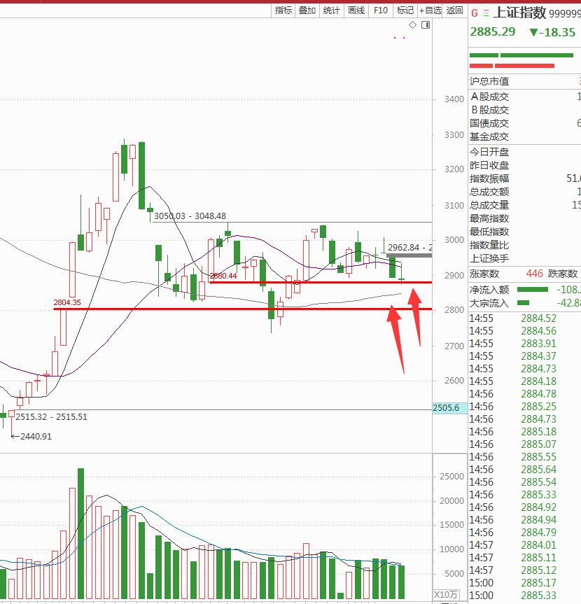 周五虽然受到恐慌盘的抛售下破了2880点,但是很快在30分钟收上来,尾盘收盘也站在了2880点上方,这说明这个位置的支撑比较强烈,目前已经多次回踩这个重要的震荡区间,支撑有效,下周又是月线收盘,所以可以根据图形推演,下周反攻力度不会小了。很多个股洗盘结束准备反攻。如图: