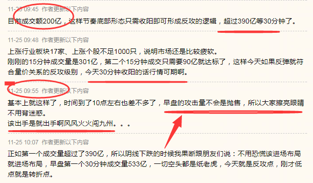 正如第一个成交量超过了390亿,所以阴线下跌的时候我果断跟朋友们说:不用恐慌该进场布局就进场布局,早盘第一个30分钟成交量533亿,一切空头都是纸老虎,今天就是反攻点,刚才低点就是转折点。