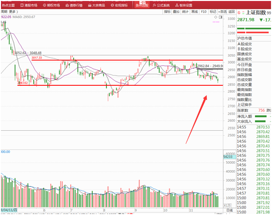 昨天的日线K线和量价关系分析今天有大概率下破2980一线,目前看果然已经下破了2980,,午盘收盘总结还在说距离跳空缺口一步之遥硬撑着不回补,这个缺口就如同一块遮羞布,想看看他回补但是似乎怕他回补,你说已经折腾这么久了该回补久回补呗?这样也没有意义吧,干脆回补了好了,结果下午加速直接击穿下探到2850一线。
