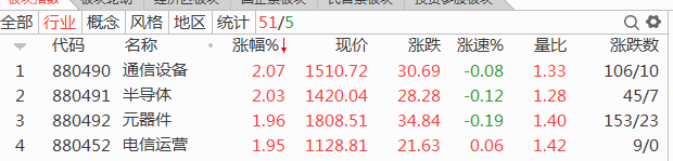 上涨行业板块52家,券商领队科技上攻。