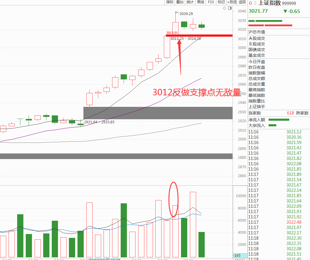 根据30、60分钟无敌量给出了新的短线多空分界线3012点,在3012点上方可以放心操作,但是依旧是以稳健和回调进场为思路,不追涨杀跌。如图: