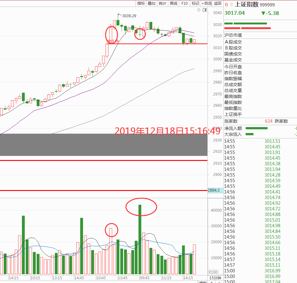 但是根据30、60分钟无敌量给出了新的短线多空分界线3012点,在3012点上方可以放心操作,但是依旧是以稳健和回调进场为思路,不追涨杀跌。下午盘中破了3012点之后最终收盘收了上来,不管怎么说筹码有所松动,需要周五之前企稳上攻,不然最后一周难以形成力度了。如图: