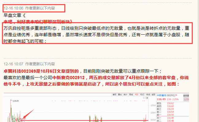 12月16日文章和直播重点关注的万讯自控300112,今再次上攻,完美封板。恭喜关注的朋友们。如图: