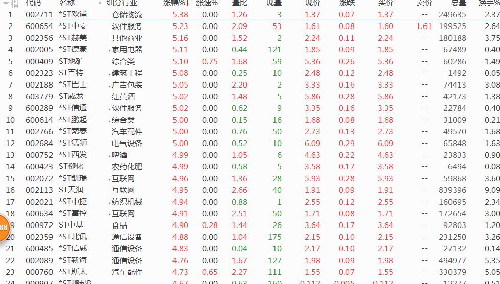 证监会关于上市公司分拆上市消息是对ST板块的利好,ST板块涨停潮,有将近20多只涨停.