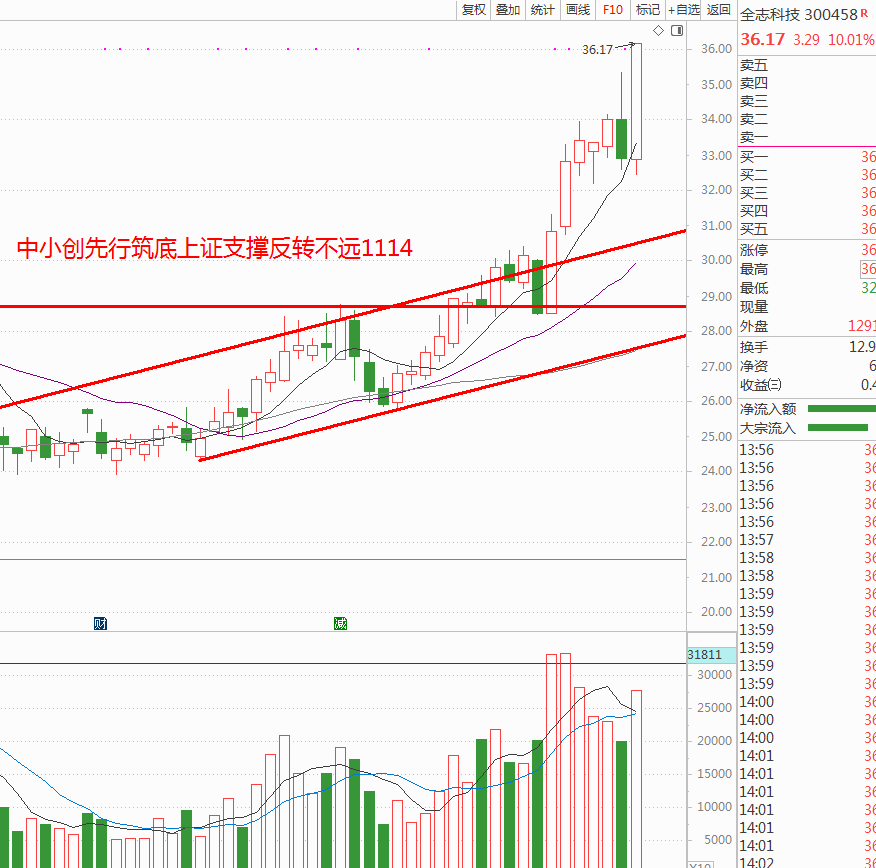 11月14日关注文字<中小创先行筑底上证支撑反转不远全志科技你是封板,恭喜持续关注的朋友们.