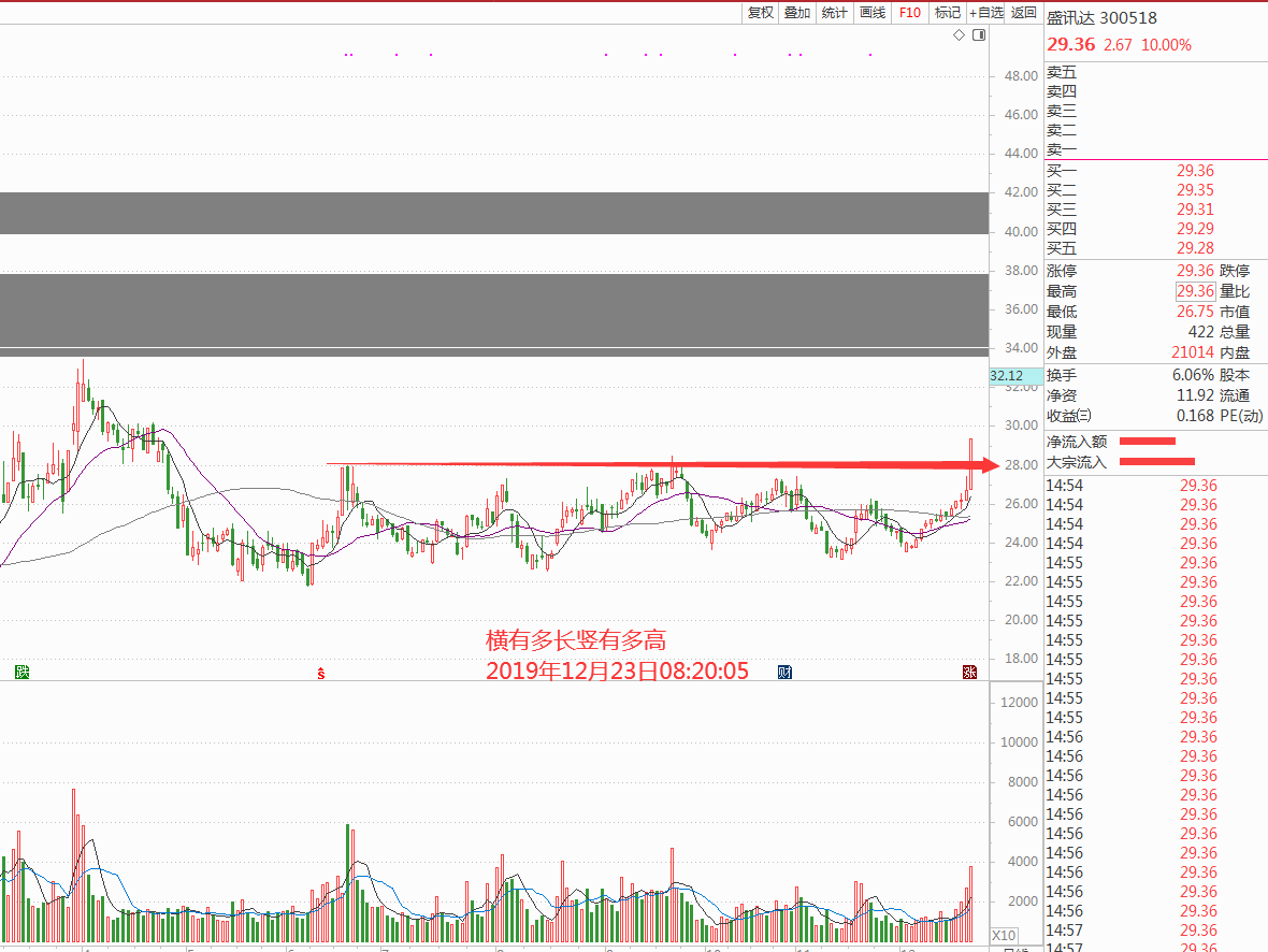 盛迅达300518横盘已经很久,上周五涨停突破引发赚钱效应,横有多长竖有多高,可以重点关注,如图: