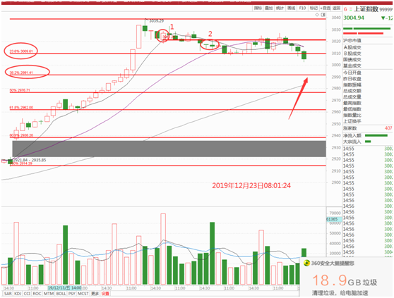 周五晚间的消息相信大家都知道了,北京应约和纽约进行了通话,这个通话的时间节点很及时,是否能够引领早盘直接从小级别翻转应该是大概率的事,目前技术上30分钟在上周五尾盘有跳水下破了0.236位置,正常情况下下破0.236位置之后大概率是要去到0.382进行试探的,受到消息刺激今天一举站上3010也就是回到0.236上方那是最好不过的事了。如图所示: