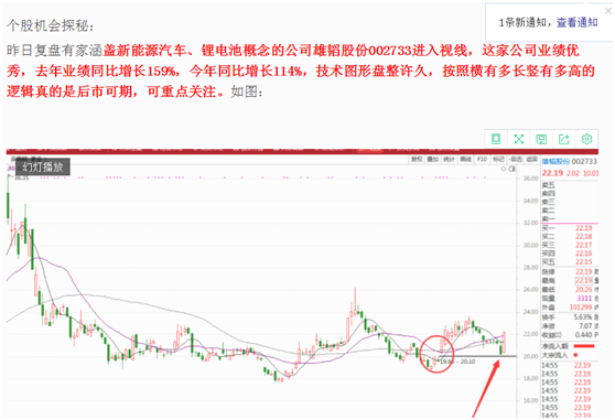 11月20日文章《1120行情飞一会选盘整刚刚启动的这样形态》无敌量跟进的雄韬股份今天快速拉升,最高冲击8个点,看尾盘有没有可能封板,恭喜持续跟踪的朋友们。