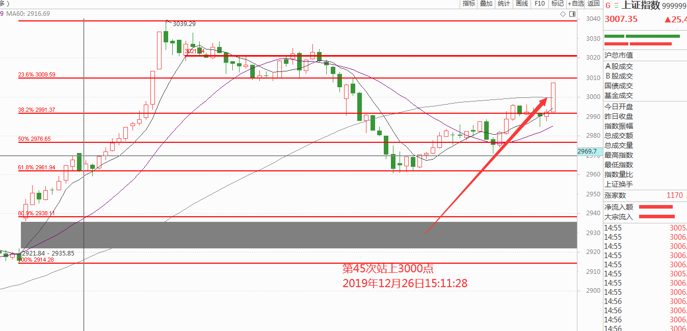 下午盘面继续维持震荡,在2点钟发动3000点的攻坚战,结果达到早盘的预期,果然收复了3000点关口。