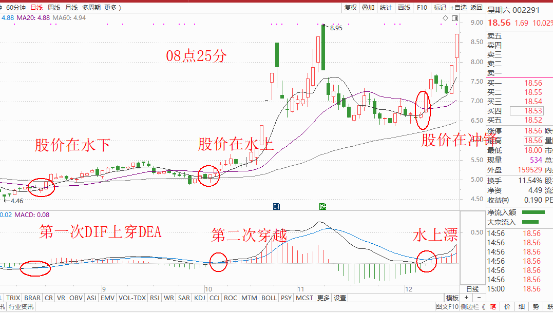 2.二次穿越的意义在于技术图形的“双底或者是”头肩底“说明主力资金洗盘充分。大概率会配合一箭穿心技术点;