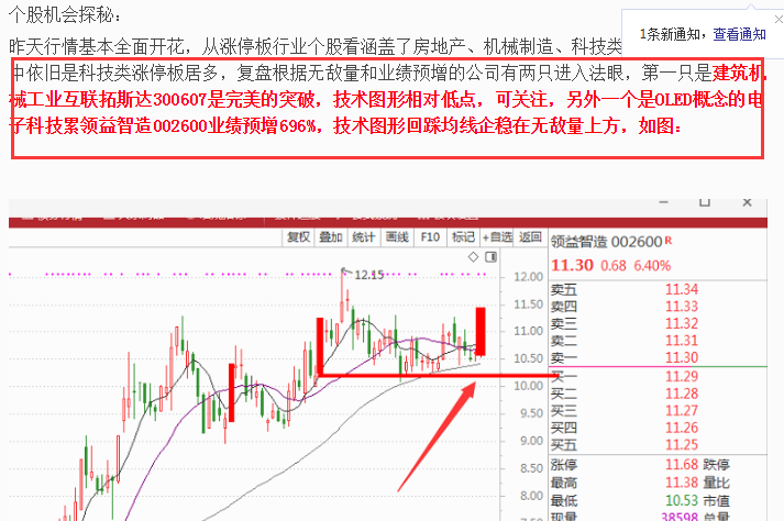 12月17日《水上运行向好多头波段行情要灵活》重点关注的领益制造002600今天冲击7个点,当时说过,这个是要给涨停或者大阳的节奏,恭喜持续关注的朋友们。