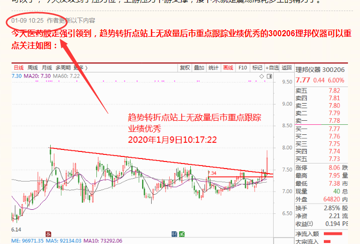 1月9日重点关注的理邦仪器300206再创新高冲击以涨停板报收;
