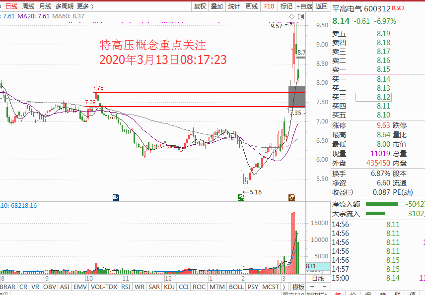 早盘文章重点关注的平高电气完美封板,恭喜关注的朋友们。如图: