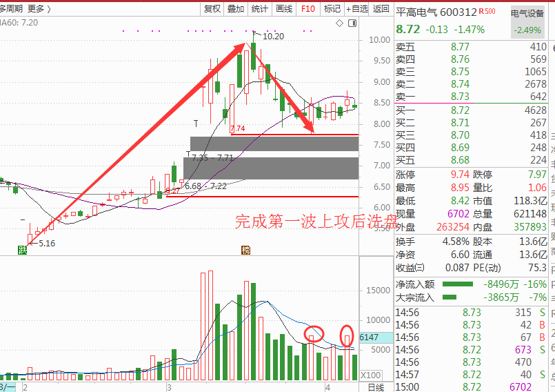 近日从国网公司旗下多家公司信息,包括特高压、充电桩、5G网络、数据中心等多个领域的新基建项目建设已在加速落实中,平高电气业绩优秀依旧是重点关注的对象,目前第一波上攻后做三角形震荡,可以重点关注,如图: