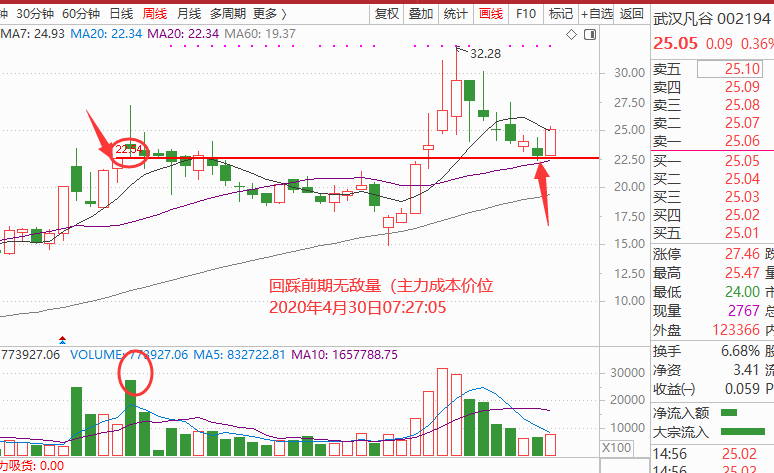因为武汉地区通信方面的利好,可重点关注武汉凡谷(002194),他是为全球领先移动通信系统集成商提供基站天馈系统射频子系统和器件客户化产品及专业服务,华为是公司主要客户之一。技术上是前期无敌量进行一个回踩,并企稳在长期趋势线之上,如图: