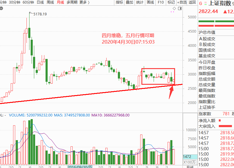 单单从技术上来讲,月线收阳那么按照道氏理论的逻辑:越大级别的方向性K线就更有对市场方向有指引作用,市场自从去年4月份开始至今已经震荡盘整了13个月,本月第十四月是一个转折的时间窗口,季度线是第五个季度,种种时间节点的巧合注定了4月维稳,五月行情可期,如图: