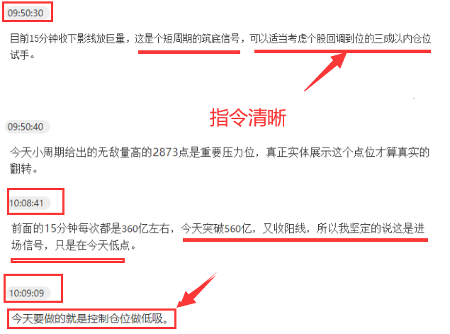 早盘高开后快速回补缺口,我们耐心等候了15分钟,15分钟收下影线阳线,并且成交额达到了560亿,比正常维稳的390亿多了将近200亿,所以我果断的断定今天的量能已经具备了攻击性,建议持股到收盘,如图: