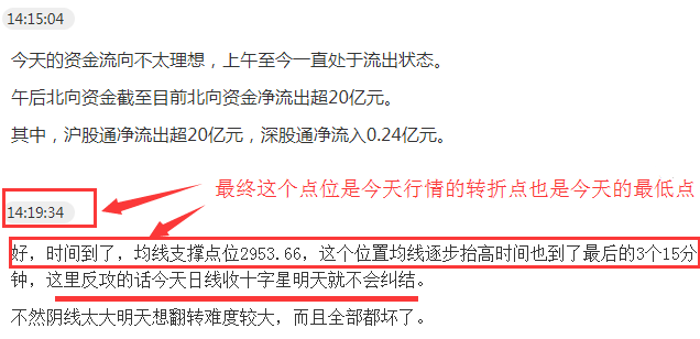 技术上30分钟又回踩2950点的需求,早盘给的指令就是:不到点位不急加仓,不成想下午稍作反弹后在2点左右加速下跌,最低下探到2951点附近,并且在这个点位果断提示加仓也是235的3成。如图: