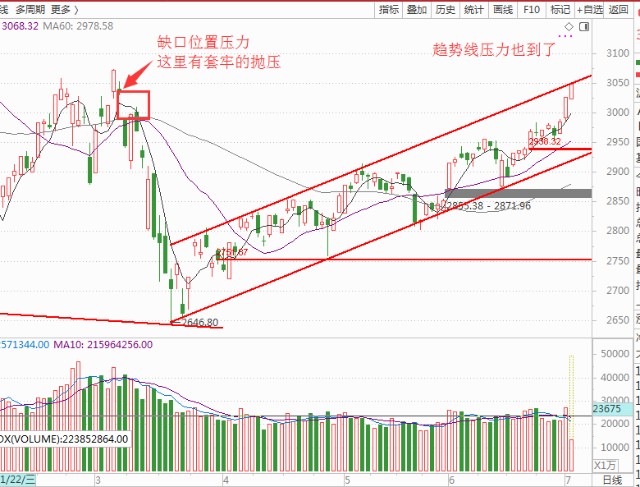 早盘文章和直播的时候强调了一个点位今天这个坎不是那么好过了,因为在3月6日那个下杀的跳空缺口还是有很大力度,当天的高点就是3052点,所以我今天早上给的压力位就是3050点(当天开盘价附近)。
