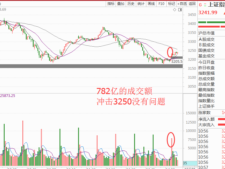 这个进攻结构的成交额没有达到强势的910亿,所以预判今天的压力位会冲击3250点附近,目前看下午还有一攻,个股低吸的机会依旧是很多。就看你敢不敢或者说有没有按照计划去进场了。如图: