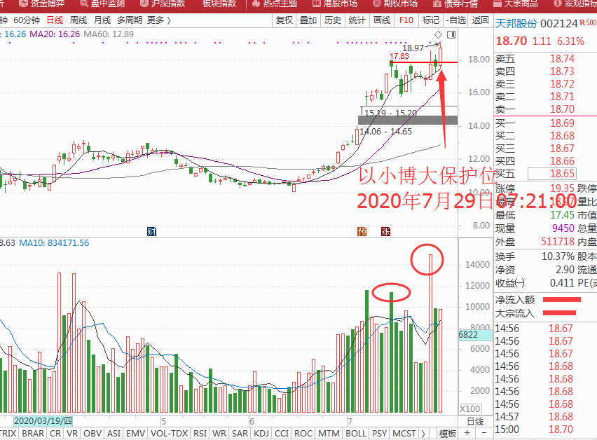农业板块中今年多数业绩优秀,其中天邦股份更是技术图形和业绩共振,昨天悄悄的站上了强无敌量上方进入加速阶段,可重点关注,快进快出。以小博大,做好最佳的资金管理,如图: